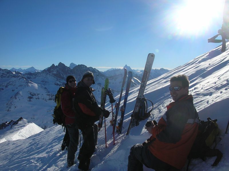 Une dépose impressionnante à côté du sommet avec le Grand Combin qui veille en arrière plan ! Top heliskiing in Verbier !